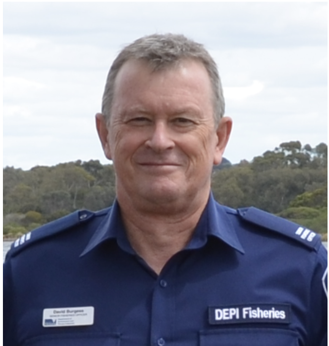 David Burgess NEM, was employed by the Victorian Fisheries Authority and its predecessors for 47 years. Thirteen of those years were as a technician/diver/boat operator in research followed by 34 years as a Fisheries Officer, culminating as the Supervising Fisheries Officer of the Queenscliff Fisheries Station. During his last his last 7 years he also led the statewide training program for Fisheries Officers recruits.